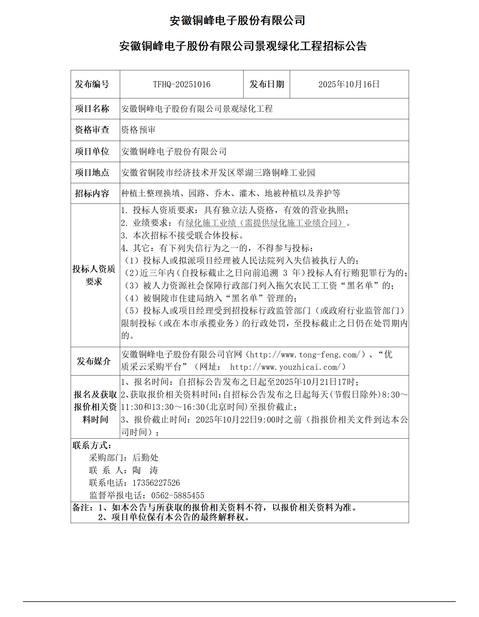安徽海洋之神HY590电子股份有限公司 (安徽海洋之神HY590电子股份有限公司景观绿化工程 招标公告)_01