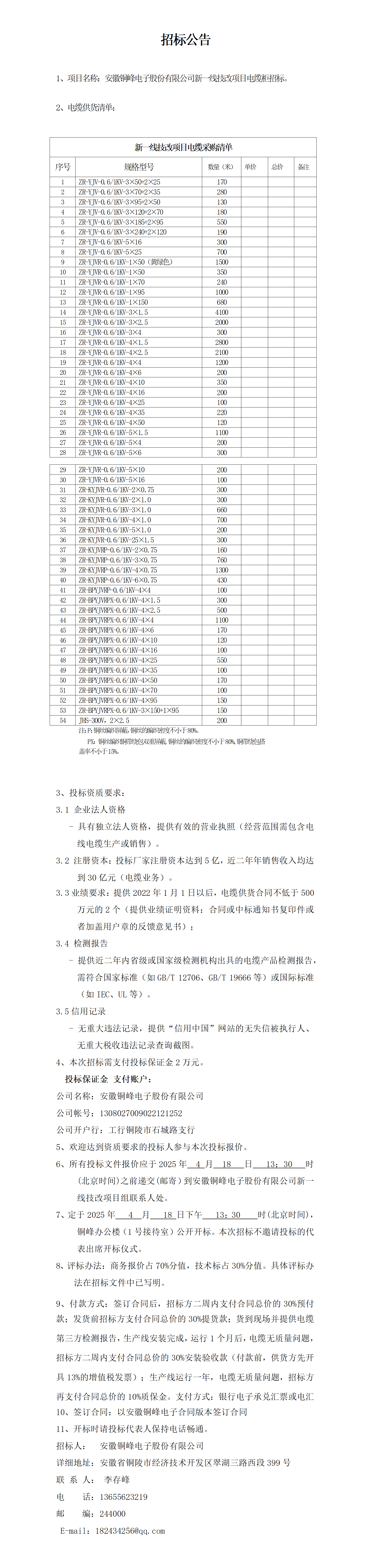 安徽海洋之神HY590电子股份有限公司新一线项目电缆招标公告_01
