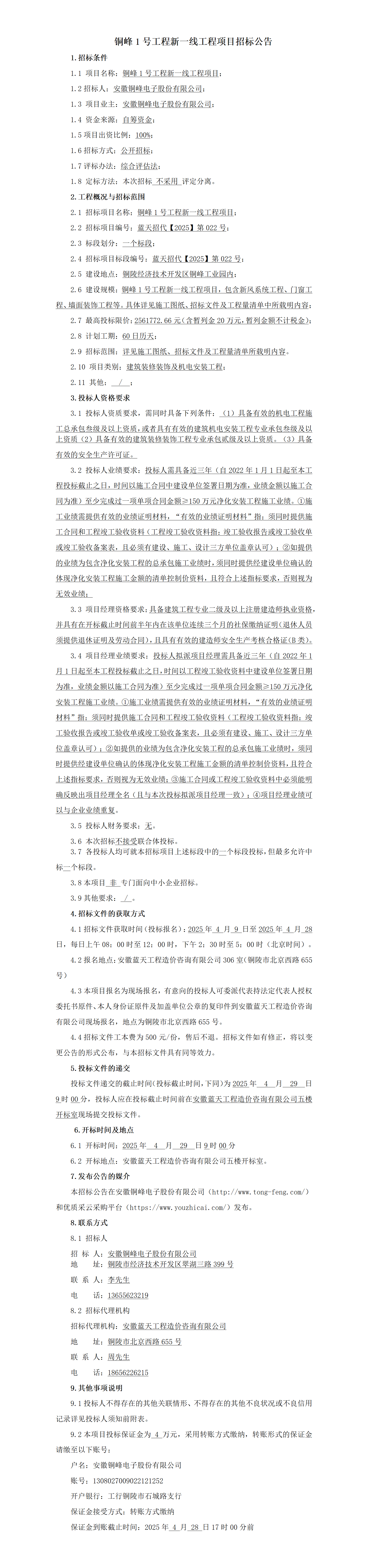 镀膜辅助设备动力配电柜招标公告(补录)