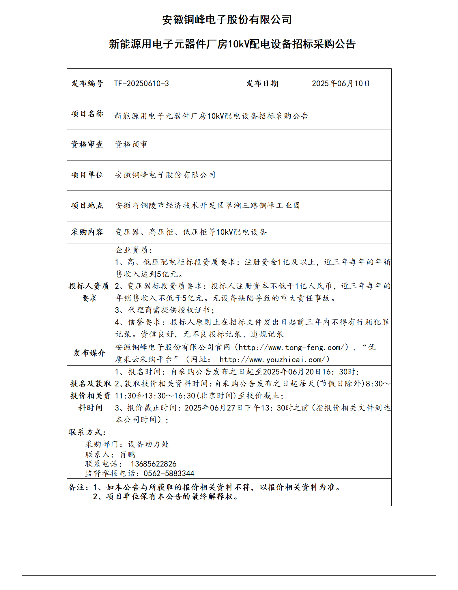 新能源用电子元器件厂房10kV配电设备采购招标公告_01