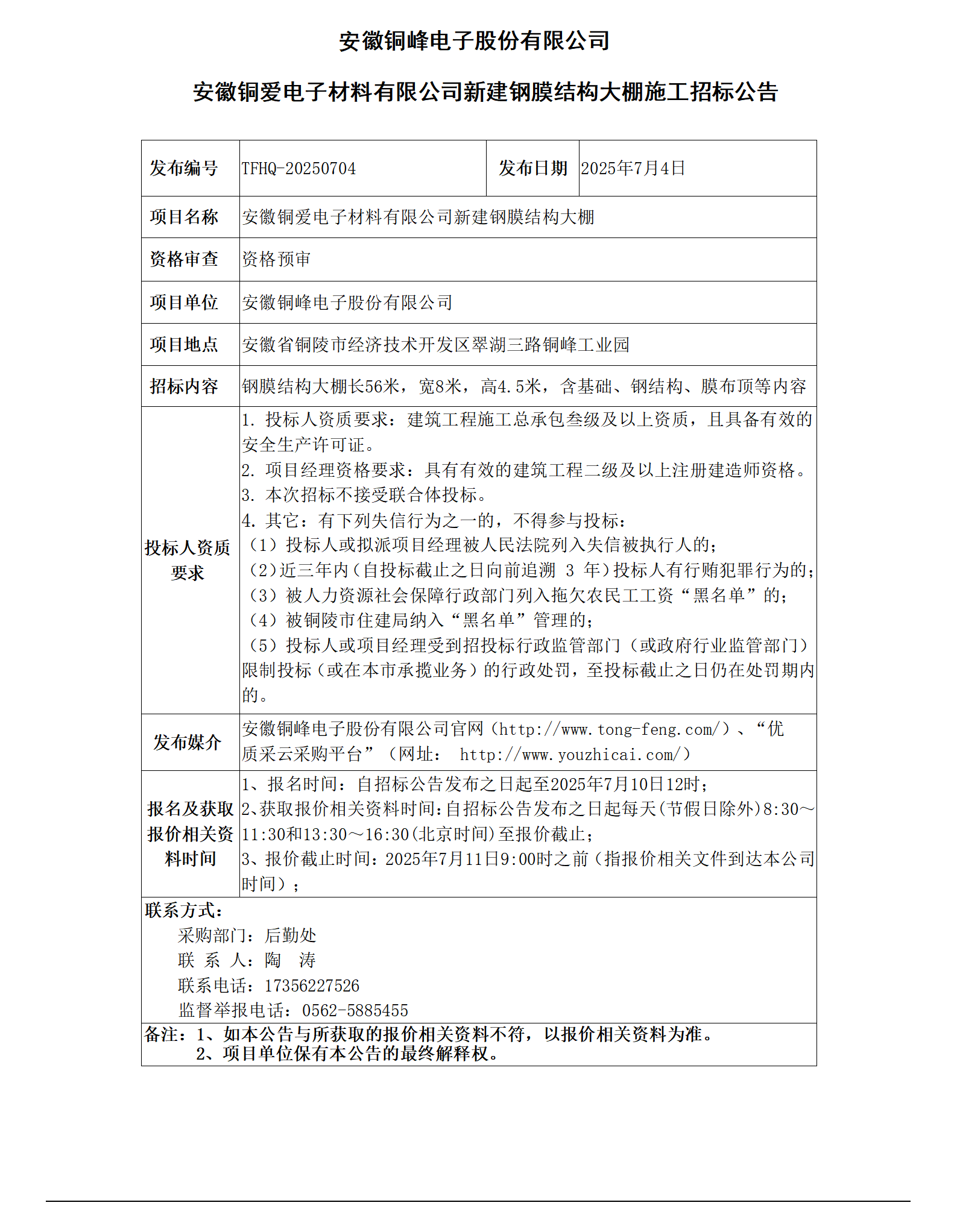 安徽海洋之神HY590电子股份有限公司 (安徽铜爱电子材料有限公司新建钢膜结构大棚招标公告)_01