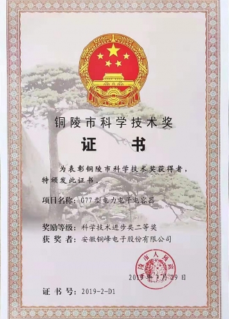 铜陵市科学技术二等奖