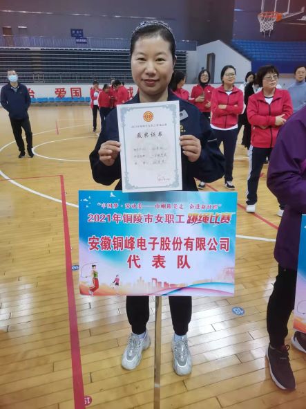 全市女职工跳绳比赛由市总工会主办,共有全市工会系统35个单位组队参赛,222名女职工、22支队伍分别报名参加单人项目和集体项目比赛。公司工会选派了2名优秀女职工选手参加了单人项目。经过参赛选手奋勇拼搏,最终电容器分公司孙艳红以一分钟单摇201个的好成绩在全市222名参赛选手中排名第11名,荣获“优秀奖”。