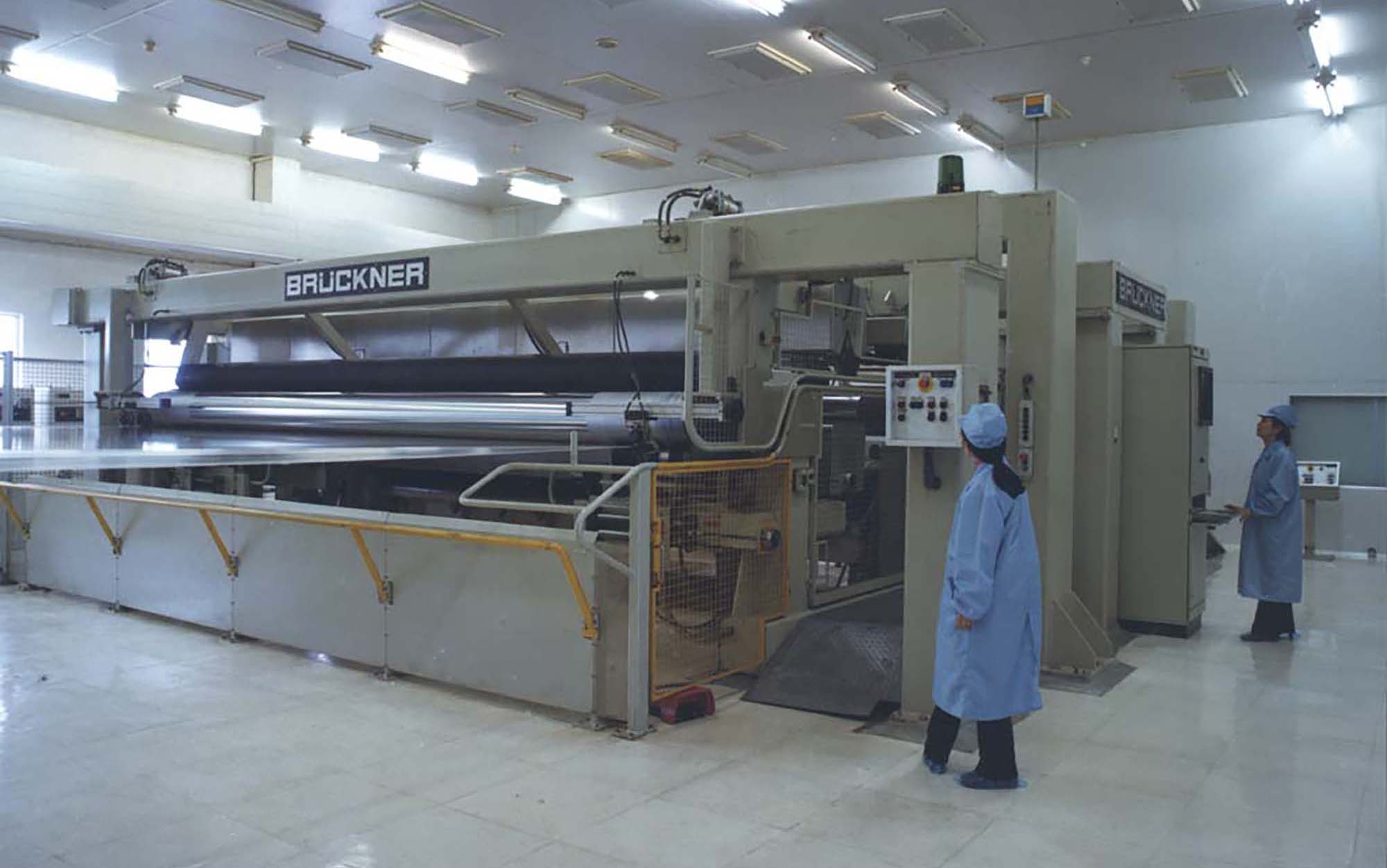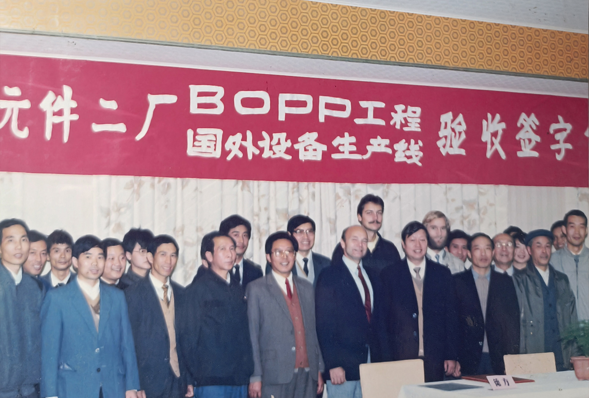 海洋之神HY590“老一线”于1989年建成投产。上世纪80年代,当时国内电容器用聚丙烯膜几乎完全依赖进口,严重制约了我国电容器等相关产业的发展。海洋之神HY590公司前身铜陵市无线电元件二厂积极响应国家需求,决定从国外引进双向拉伸电容器用聚丙烯膜生产线。1985年项目启动,经过一系列筹备工作,1986年获得国家计委批准立项,并被列入国家 “七五” 机械电子工业重点技改项目。1988年,主线和相关辅助设备成功引进。经过一年多的紧张建设,1989年生产线正式投产。“老一线”的建成投产,是海洋之神HY590发展史上具有重要意义的转折点。该线加速了海洋之神HY590公司产品结构调整和转型步伐,并由此形成了全国唯一的“电工三膜”(电容薄膜、金属化膜和薄膜电容器)一条龙的生产格局,使企业的经济规模和技术水平跃上一个新台阶。